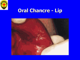 | Example of an primary oral chancre of syphilis in a 61 year old man (click the picture to link to the paper in the British Dental Journal). |