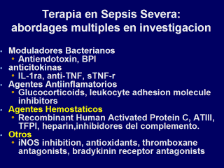 Numerous investigational approaches have been evaluated in the population of patients with severe sepsis. They include bacterial modulators, anticytokines, antiinflammatory agents, hemostatic agents, and other interventions.
