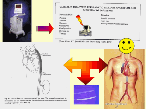 of the IABP are: 1 Augmentation of the oxygen supply into myocardium as a result of the augmentation of the EDP. 2 Decreasing of the oxygen demand by myocardium as a result of the reducing of the afterload. General effects of the IABP are: 1 Increase : GS.CI peripheral tissue perfusion, diuresis. 2 Decrease: EDPPA, FC, W. |