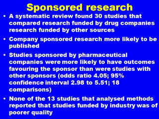 Benjamin Djulbegovic, and Otavio Clark Pharmaceutical industry sponsorship and research outcome and quality: systematic review BMJ, May 2003; 326: 1167 - 1170. |