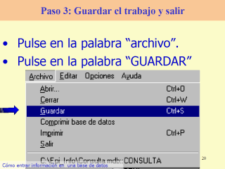 terminado. En el ejemplo hemos usado tres pacientes. Usted usará 30 o 300 registros. Puede parar cuando lo desee y continuar la tarea mas tarde. Por eso necesita Guardar el trabajo y Salir. |
