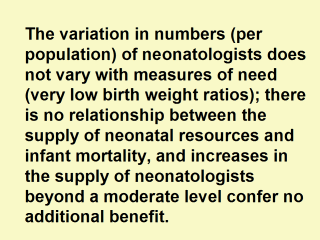 | Source: Goodman DC, Fisher ES, Little GA, Stukel TA, Chang CH, Schoendorf KS. The relation between the availability of neonatal intensive care and neonatal mortality. N Engl J Med 2002; 346(20):1538-1544. |