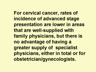 | Source: Campbell RJ, Ramirez AM, Perez K, Roetzheim RG. Cervical cancer rates and the supply of primary care physicians in Florida. Fam Med 2003; 35(1):60-64. |