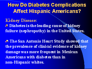 Diabetes is the No. 1 cause of kidney failure in the United States, accounting for more than 40 percent of new cases of end-stage renal disease (ESRD), or total kidney failure, each year. People with ESRD require regular dialysis or a kidney transplant to stay alive. The links between diabetes and kidney failure are not new, but as the incidence of diabetes increases, the number of ESRD cases also has increased dramatically. Each year, 120,000 Americans permanently lose their kidney function as a result of diabetes. Not everyone with diabetes develops kidney disease. Factors that can influence development include genetics, blood glucose control, and blood pressure. The better a person keeps diabetes under control, the lower the chance of getting kidney disease. High blood pressure should also be kept under control. The healthier the blood pressure, the healthier the kidneys will be. More than 30 percent of people with type1 diabetes will one day have kidney disease, compared with perhaps 10 percent of people with type 2 diabetes. People with type 1 diabetes have 15 times the risk of ESRD as those with type 2 diabetes. The longer a person has diabetes, the higher the risk of kidney disease-up to a point. After 40 years with diabetes, if a person does not yet have kidney disease, he or she probably never will. Research suggests that high levels of blood sugar and hypertension (high blood pressure) increase the risk of people with diabetes developing ESRD. Hypertension is a particularly dangerous complication of diabetes because the regulation of blood pressure is a key function of the kidney. As hypertension progresses and damages the kidneys, the organs are less able to do the job of controlling blood pressure, triggering a dangerous cycle ending in severe kidney damage. The combined effect of continued hyperglycemia and elevated blood pressures results in acceleration of diabetic nephropathy and retinopathy. Men are 50 percent more likely to get kidney disease than women. Native Americans are seven times more likely to have kidney disease than other ethnic groups. Other ethnic groups at greater risk are African Americans (three to four times the risk of non-Hispanic whites) and Mexican Americans. |
