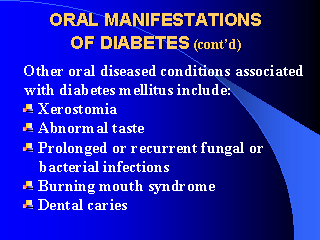 Oral Manifestations of Type 2 Diabetes Mellitus: (cont'd)