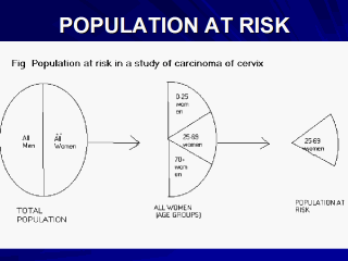 For e.g. for cancer cervix studies, we choose the women in reproductive age, not female children and certainly not males. Reference population is the one, which has to be get benefited after our descriptive study. Thus the population at risk is better one to be studied rather than the total population while formulating hypothesis as the inferences after testing hypothesis cannot be generalized to all the components of whole population except to the specific and vulnerable/susceptible portion of it. |