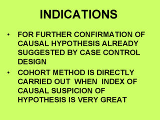 Both the case control and cohort designs are having their own merits and demerits. While the bias is the main problem with the former, follow up , attrition and ethical problems are the hurdles for the latter. Some believe that case control study is the initial step for establishing causality later to be followed by cohort study. But case control technique will be uniquely useful in certain circumstances. |