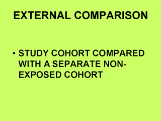 It is preferable to choose the external comparison cohort from the same population from which the study cohort is drawn as it enhances the elimination and neutralization of the different variables present in both the groups and increases the validity. |
