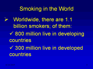 Smoking consequences are overwhelming both on the individual and national level. Morbidity and mortality associated with smoking means an increase in health expenditure; in addition to the suffering of the affected individuals as well their families
