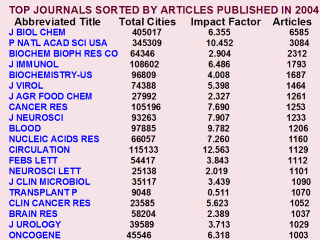 by the number of articles published in 2004. Journal of Biological Chemistry