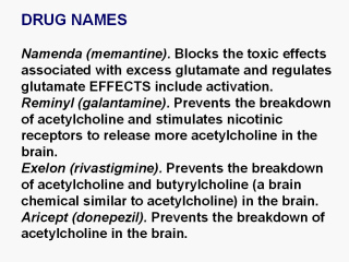 that involves the proteasome. See J Biol Chem 280: 37377-37382, 2005. COMMON SIDE EFFECTS include dizziness, headache, constipation, confusion, nausea, vomiting, diarrhea, weight loss, upset stomach, muscle weakness, possible liver damage. None with NSAIDs medication (non-steroidal anti-inflammatory drugs) such as aspirin or ibuprofen can also cause stomach ulcers. Nueroprotectors include antioxidants, vitamin E, selegiline, nonsteroid, antiinflamatories, estrogens, testosterone, propentofiline, idebenone, extracts of the chinese tree Ginkgo biloba, Huperzia serrata, ALCAR, acetyl-L-carnitina HCl, neotrofine, nimodipine, cerebrilisine, linopiridine, melatonine and others. |