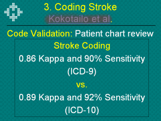 In the stroke code validation, ICD-10 was not significantly better than ICD-9.