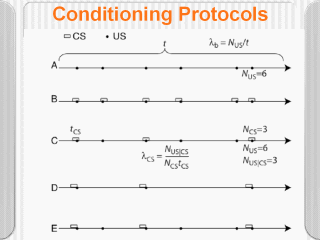 positive” protocol because the CS is a predictor of the US (the dots, that