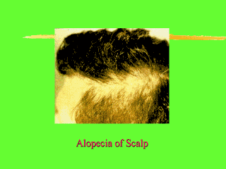 In Negroid people this hair loss may take on the so-called "moth-eaten"scalp appearance.