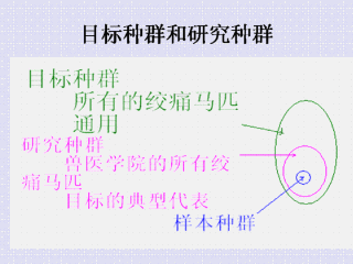 抽样过程通过韦恩图表来表现。有效性指的是从目标种群中确定研究种群的标准。精确性是一个