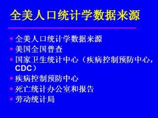 人口统计学数据有许多来源。现在这些资料在互联网上流传得相对更广泛。你可以从我的网站的网页上得到这些资料,这个网站就是专门作为公共卫生数据用的,这些数据进入