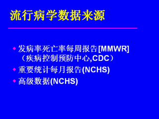 其它的流行病学数据来源包括:州死亡统计报告(州,县和地方卫生部);地方或州卫生计划署,专业学术杂志,当然还有互联网。你可以从