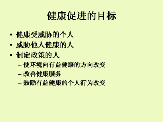 用健康促进的方法解决这些问题,既以需要使用过滤器的个人,又以吸入二手烟的家庭成员为目标。另外,它的目标还包括那些在学校制定准则的人和让这个家庭接受更好的医疗服务的人。健康促进是多层面的,因为它涉及解决健康问题的社会各个层面。