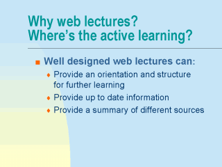 glimpse of topics that they may want to research further. Web lectures can also provide