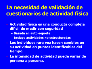 epidemiológicos están basados en la actividad física auto-reportada,