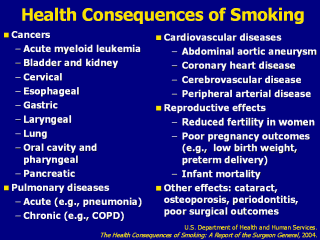 evidence to infer a causal relationship with smoking. Note to instructor(s): For more detailed information and literature citations regarding risks for these tobacco-related illnesses, refer to the Pathophysiology of Tobacco-Related Disease module or the Surgeon General’s Report at http://www.surgeongeneral.gov/library/smokingconsequences