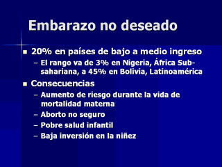 diferencias globales. En Bolivia, por ejemplo, la tasa de embarazo no