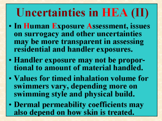 residential and agricultural handler exposures may be more appreciable. As stated in Lecture 8, Pesticide Handlers Exposure Database