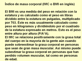 kg/altura en m2 es el rango entre malnutrición y obesidad. IMC de 25 a 29.9