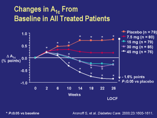 difference in mean A1c at endpoint for the 45-mg once-daily dose group vs