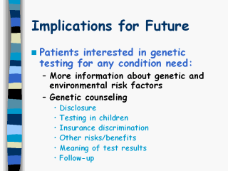 genetic testing, better communication with patients to confer genetic test