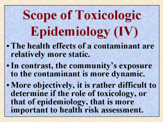 occupational mobility or otherwise the future access to the contaminant. It is based on the above argument that health risk assessment (RA) is considered to be more a part of epidemiology than of toxicology, and hence more appropriately disguised as toxicologic epidemiology than as regulatory or epidemiologic toxicology. To some extent, this series' biased perspective echoes that of the book Environmental Epidemiology and Risk Assessment (Aldrich et al., 1997), which offers a new conception of the methodological considerations involved in the conduct of environmental epidemiology studies. That volume includes a fair amount of discussion on the basic principles of risk assessment and risk communication. The relevance of epidemiology in RA is also discussed extensively in another collection of 17 papers entitled The Role of Epidemiology in Regulatory Risk Assessment (Graham, 1995). More objectively, however, the question whether RA is more the role of toxicology or of epidemiology is analogous to the question which American people nowadays avoid to answer: Is the wife's role, or the husband's, that is more important to a family? |