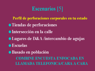 Escenario 5: Hay que hablar mucho acerca de la popularidad de las perforaciones corporales pero poca confirmación de quien está perforado, por qué, dónde, etc. ¿Cuál sería la mejor forma de determinar si tu eres el primero en intentarlo en tu país?
