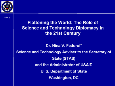 science diplomats, both in and out of the State Department. I am optimistic