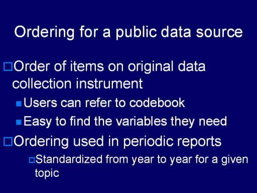 order of items across years or across geographic units. Many Census