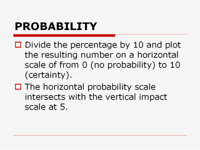 | Fink assumed that probabilities would be expressed as percentages in whole numbers, 95% for example. If you have used probabilities on the scale of 0 to 1.00, the method we use in this presentation, you simply mark the scale for 0.0 to 1.0. The intersection of the scales occurs at 0.5. |