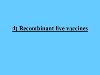 | One virus e.g. a poxvirus is used as a vector for genes from other viruses. The glycoproteins from Rabies, Rinderpest and Newcastle Disease Virus have all been made into such vaccines and the vaccines licensed in certain countries. |