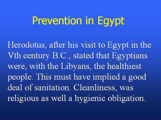 history in Egypt. In fact some of the earliest writing on sanitation,