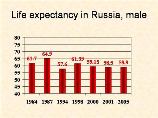 from 1995 onward. Male life expectancy dropped from 63.8 in 1990 to 57.6