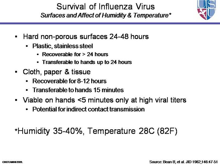 Affects of humidity on infectivity influenza, Loosli et al, 1943 |