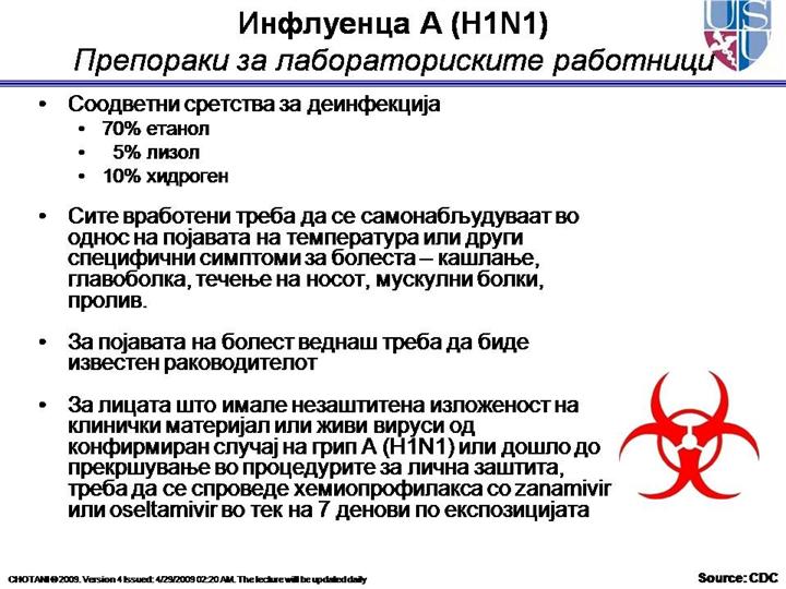 За дополнителни информации видете: Biosafety in Microbiological and Biomedical Laboratories (BMBL) 5th Edition Section IV Laboratory Biosafety Level Criteria (http://www.cdc.gov/OD/ohs/biosfty/bmbl5/bmbl5toc.htm)