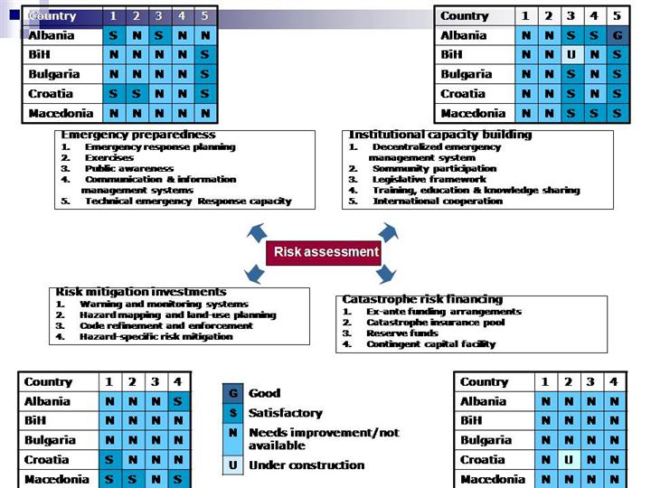 Risk assessment for each country from the region was made on the basis of emergency preparedness, institutional capacity building, risk mitigation investments and catastrophe risk financing. |