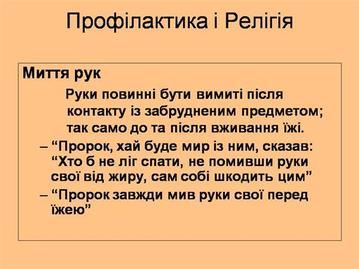 Профілактика хвороби і методи гігієни мають дуже довгу історію. Гігієнічні методи властиві всім основним релігіям: як Ісламу, так і Християнству, Іудаїзму та Індуїзму. Ми, в рамках Суперкурсу, можемо представити найкращу наукову інформацію в Інтернеті. Ця інформація щодо профілактики може продовжувати поширюватися через існуючі системи передачі інформації на місцях, включаючи релігіозні канали, шкільних друзів, колег, соціальні групи тощо.