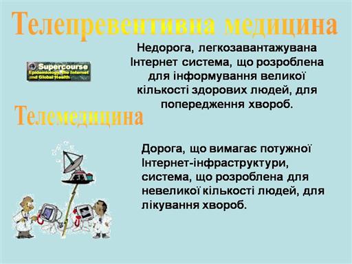Ми повинні розрізняти телепревентивну медицину і телемедицину. Телемедицина покликана "виліковувати", і це дорого; малоймовірно, що вона може мати вплив на глобальне здоров’я. На відміну від телемедицини, телепревентивна медицина доступна мільйонам з метою профілактики захворювань. Ми маємо потенціал, щоб продовжувати покращувати глобальне здоров’я. Суперкурс – один з прикладів того, як телепревентивна медицина може досягнути більшого числа людей при низьких затратах. Золота лекція – чудовий інструмент для поширення важливої інформації в системі телепревентивної медицини. Вона досягне мільйонів людей по мережі Інтернет, не потребуючи на це значних затрат. |