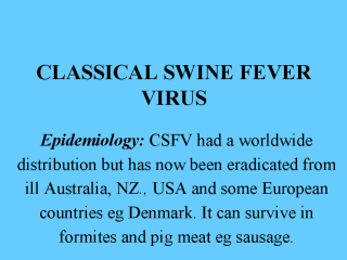 days post infection. Pyrexia, anorexia, leucopenia and generalised petechial haemorrhage