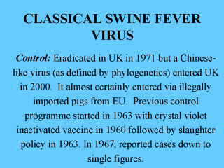 Notifiable disease in the UK. Diagnosis of CSFV by virus detection in tissues,