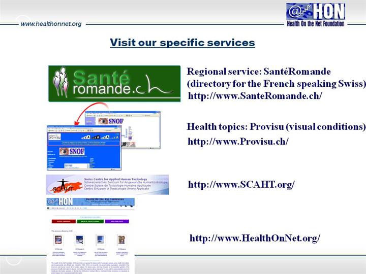 HON has continuously worked towards the goal of quality information for over a decade and in doing so, has earned the trust of high level partners in the government and the public. Based on the ongoing collaboration with France, HON could replicate this with other countries world wide.