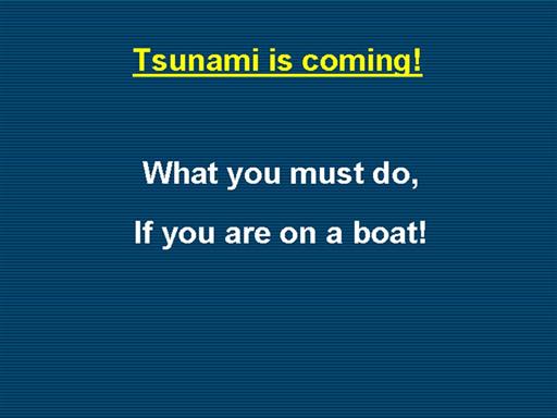 §Damaging wave activity and unpredictable currents can effect harbors for a period of time following the initial tsunami impact on the coast. Contact the harbor authority before returning to port making sure to verify that conditions in the harbor are safe for navigation and berthing.