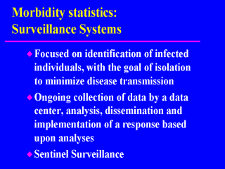 Sentinel surveillance - relatively inexpensive. This type of surveillance is frequently used in occupational health surveillance programs. The identification of one case would suggest that there may be other cases.