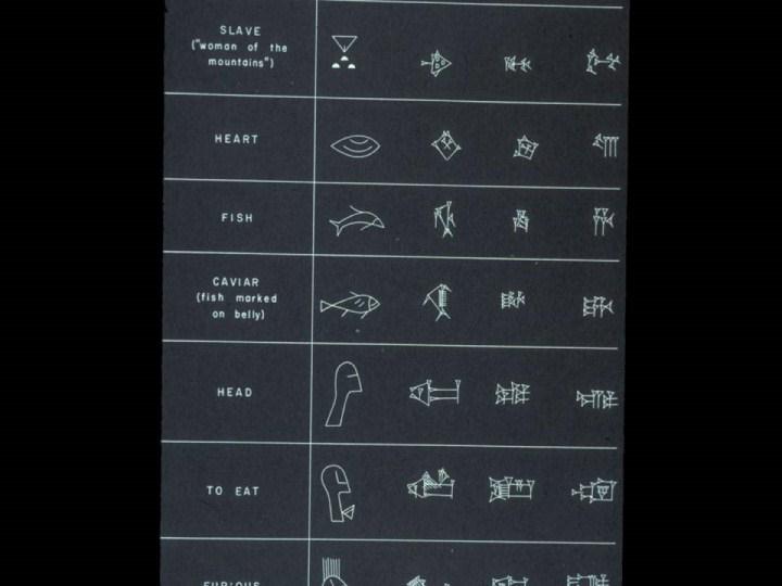 The most prominent early city‑state was Sumer, circa 3,100 B.C., and it was the Sumerians who get the credit for first developing writing. (Slide 1560) At first they used pictograms, but over time they developed bits of short, wedge‑shaped lines that became their cuneiform writing style. |