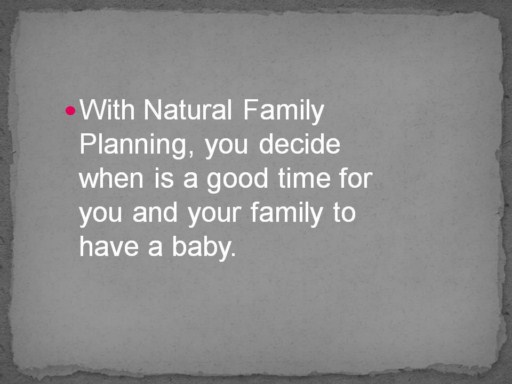 With Natural Family Planning, you decide when is a good time for you and your family to have a baby.